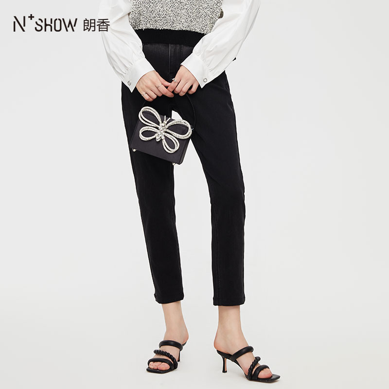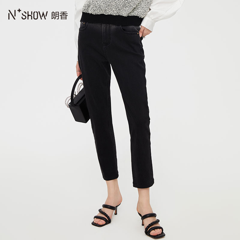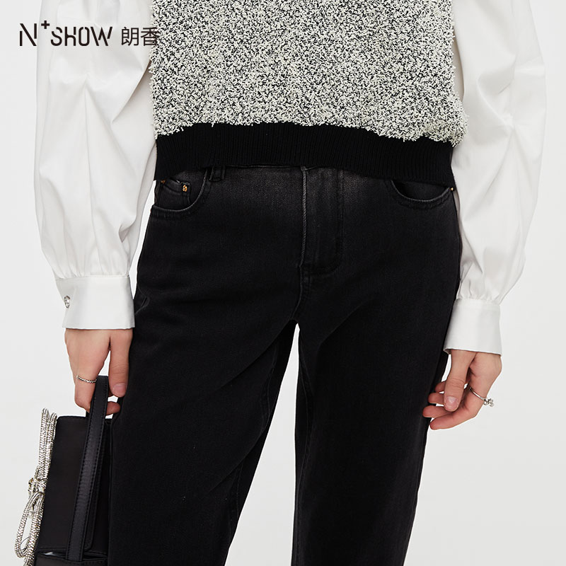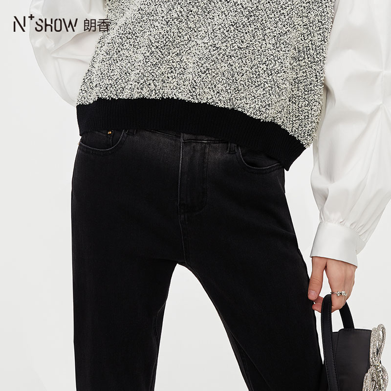 秋冬加绒加厚小个子宽松 女2025年新款 RAU小黑裤 高腰直筒牛仔裤