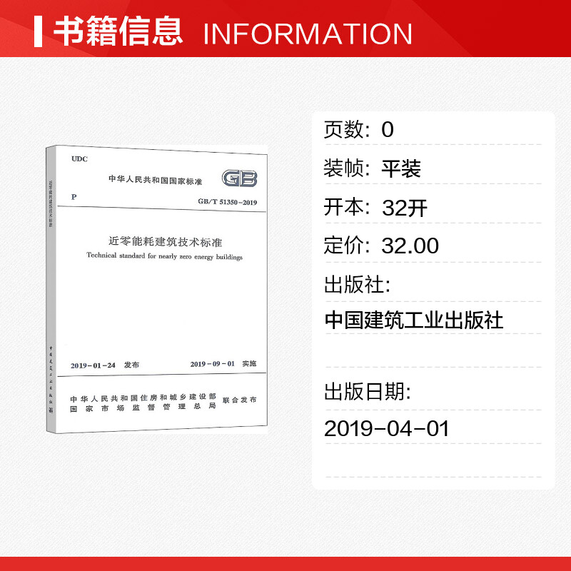 51350 2019 中国建筑工业出版 社 新华书店旗舰店文轩官网 书籍 近零能耗建筑技术标准 正版