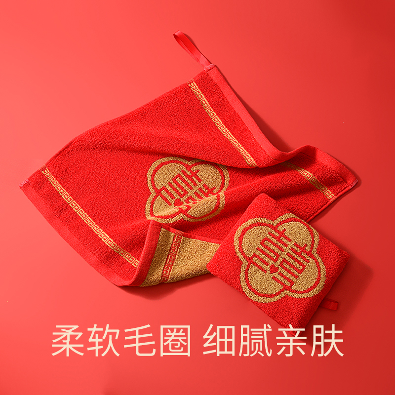洁丽雅喜庆方巾新婚纯棉伴手礼家用全棉擦手巾柔软小毛巾瞬吸亲肤