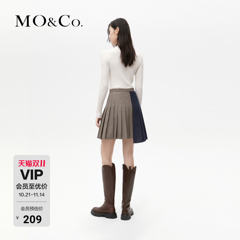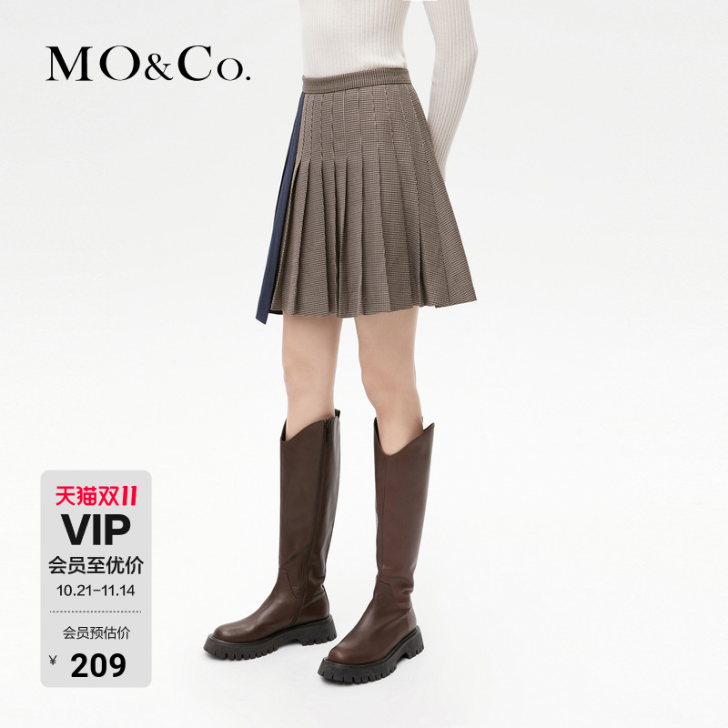 MOCO不规则拼接百褶裙千鸟格半身裙复古短裙设计感小众