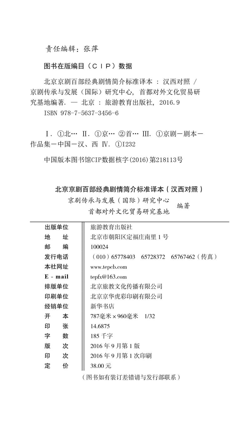 京剧传承与发展 社 百部经典 旅游教育出版 研究中心 国际 9787563734566 汉西对照 剧情简介标准译本 北京京剧 黑白