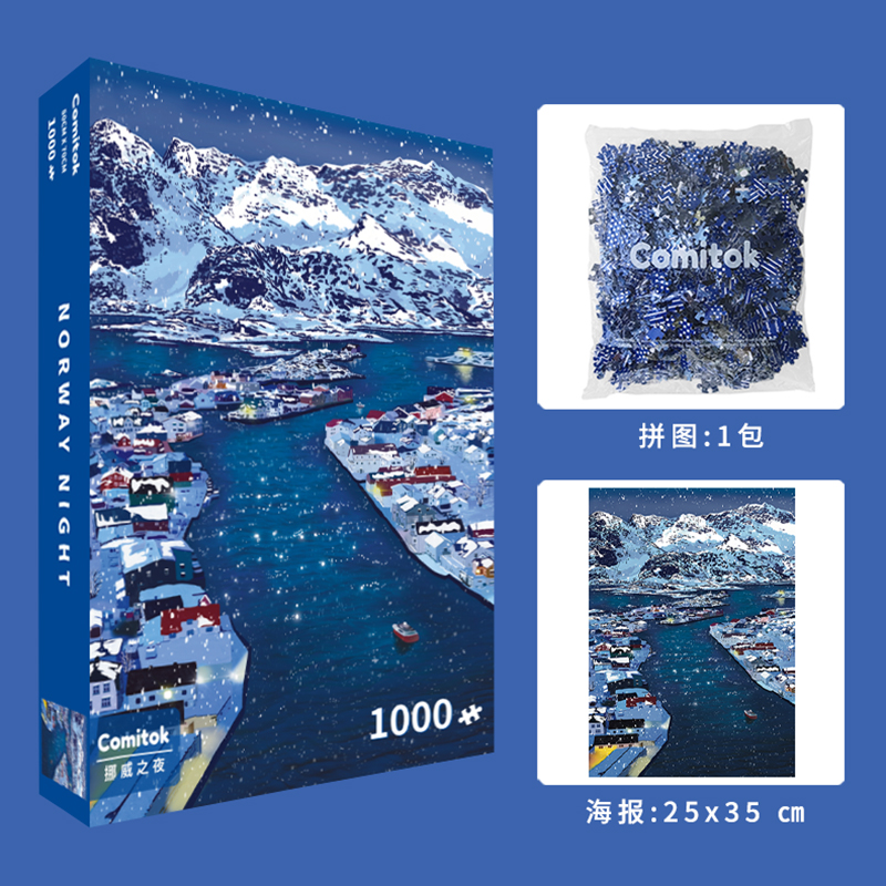 Comitok挪威之夜拼图1000片成人蓝卡纸质潮玩艺术高难度减压玩具
