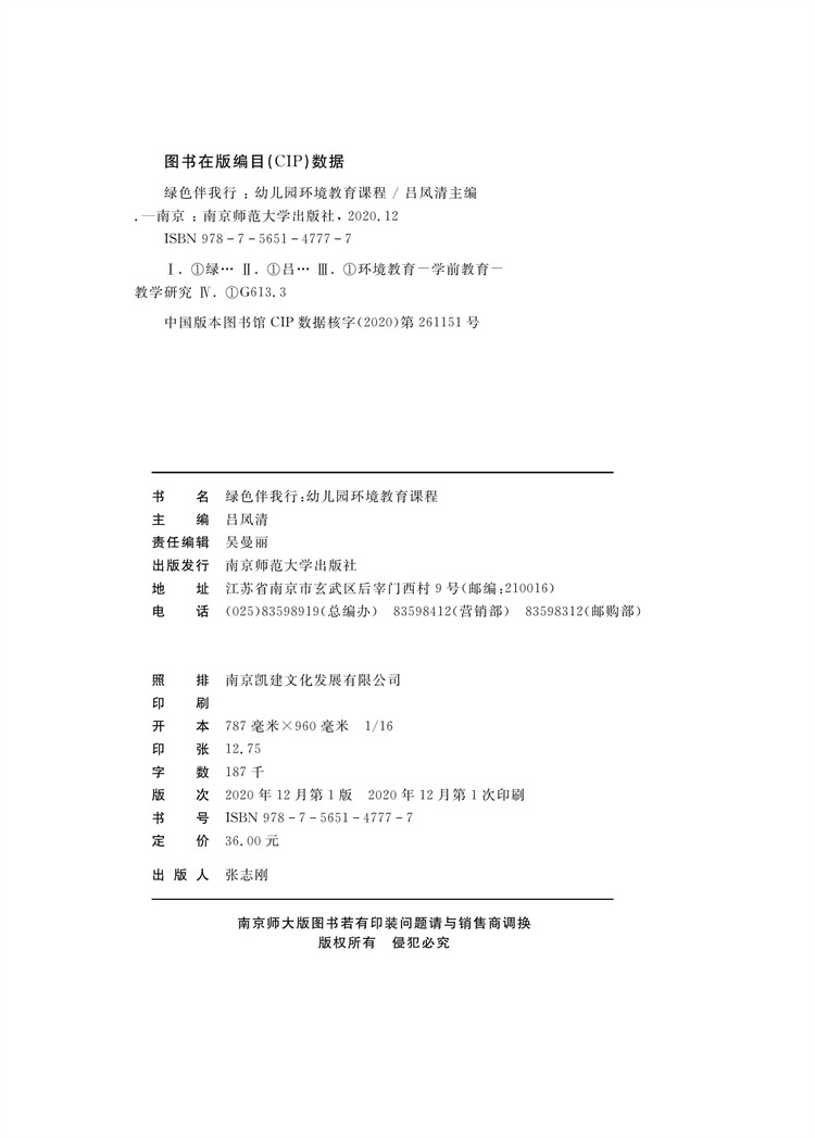 幼儿园环境教育课程 社 环境教育 南京师范大学出版 学前教育教学研究 绿色伴我行