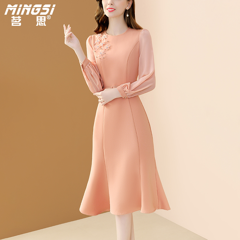 宽松领口珠片花朵裙子 新款 乐町韩系千金感连衣裙女装 2025年秋季
