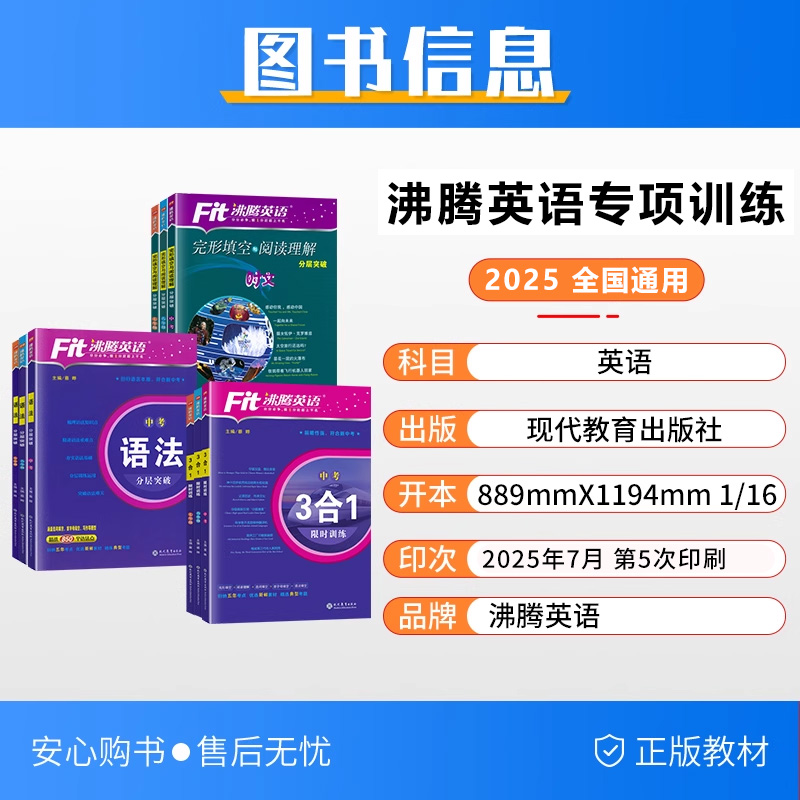 2025版 初中沸腾英语3合1阅读理解与完形填空选词填空听力分层突破选词填空语法填空七八年级九年级中考初一二三上册下册专项训练