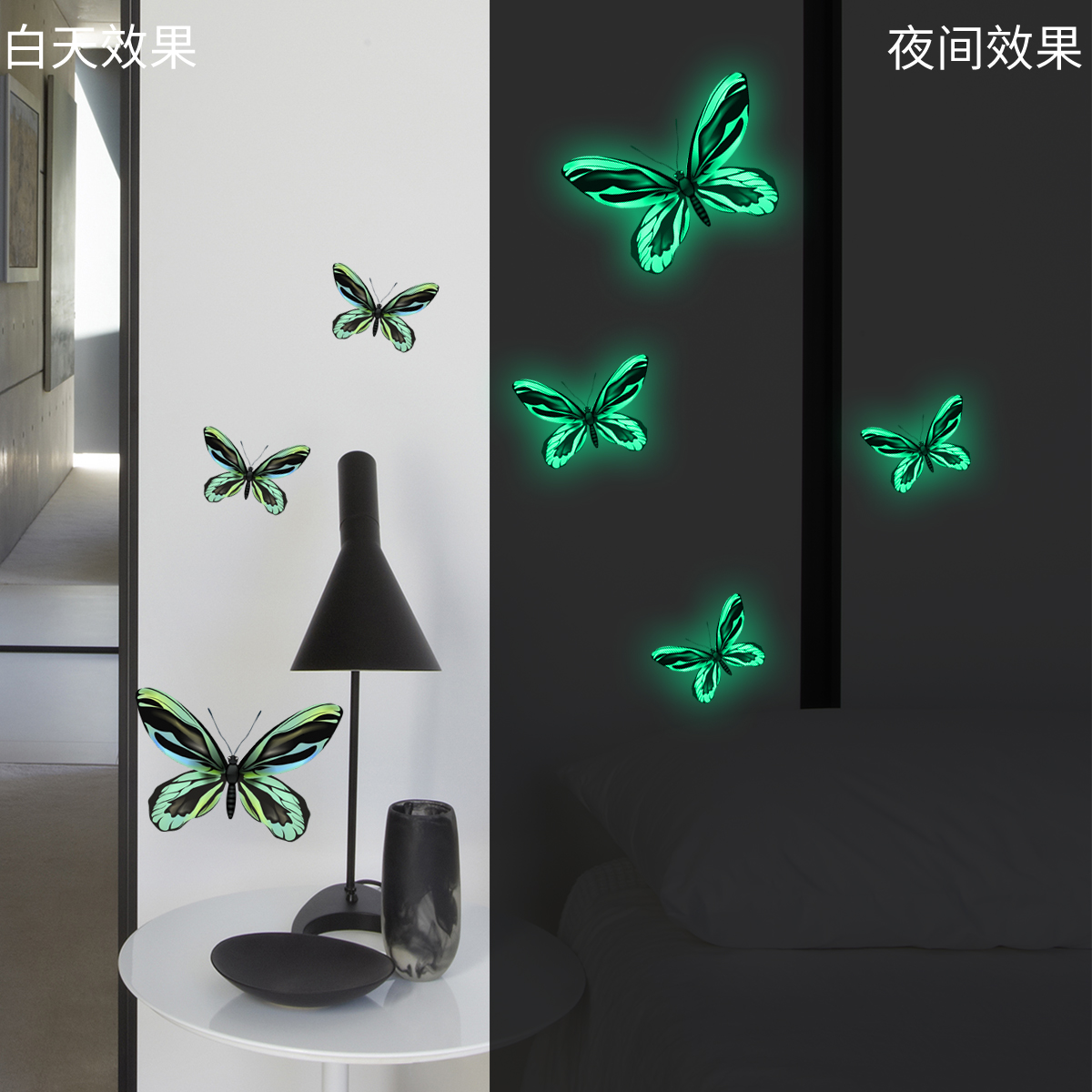 自粘diy夜光儿童房卧室背景墙贴装 饰墙贴 饰 卡通夜光蝴蝶装 新款