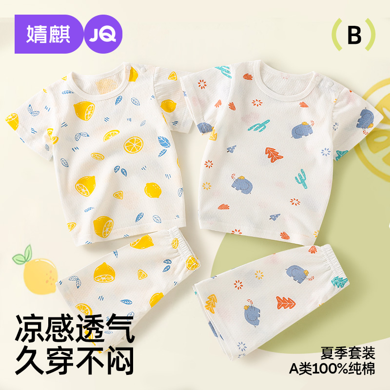 短袖 睡衣空调衣服儿童短裤 套装 男女婴儿夏装 纯棉薄款 婧麒宝宝夏季