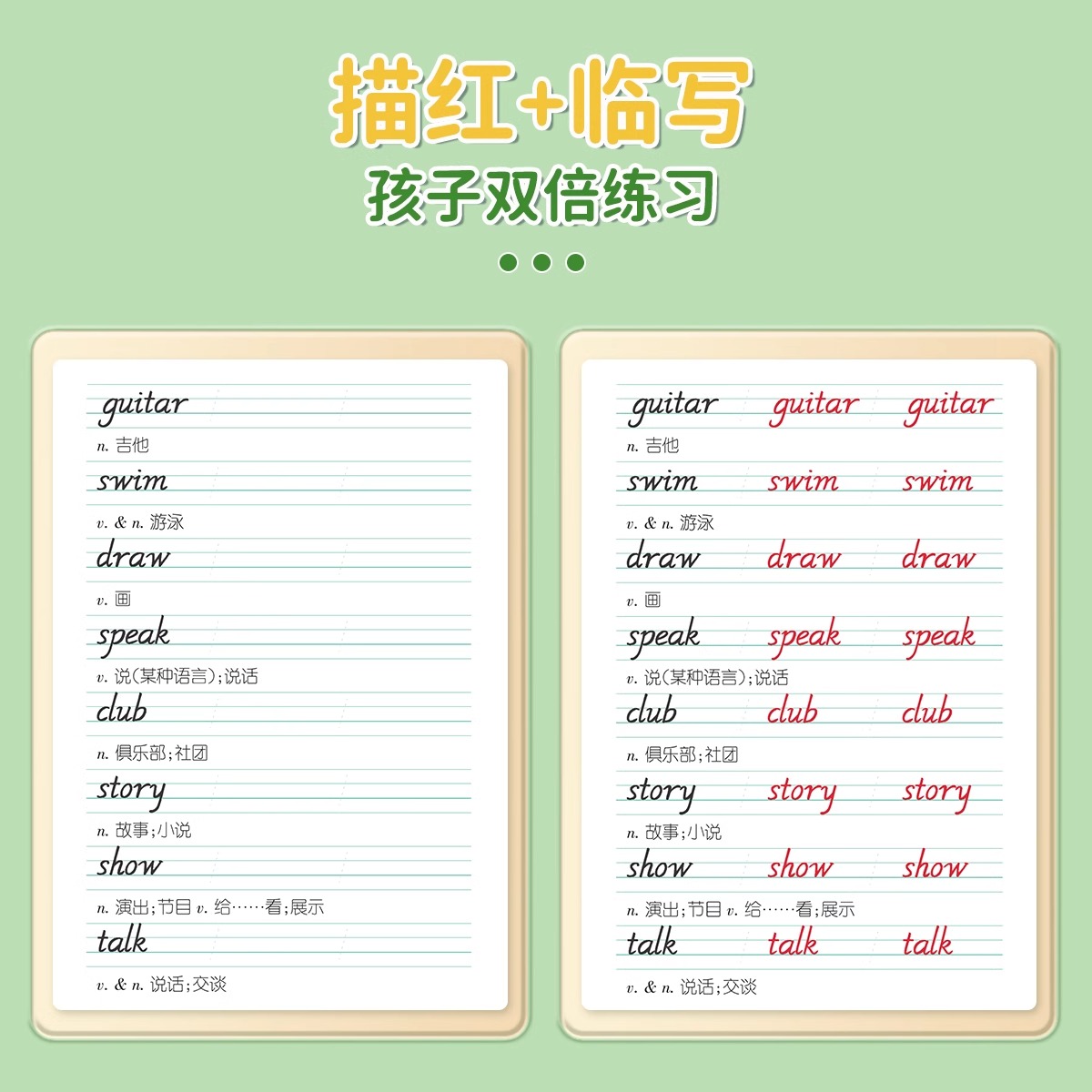 笔墨先锋七年级八年级意大利斜体英语字帖下册九年级人教版 同步练字帖初中英文字母书写练习单词每日一练硬笔字帖