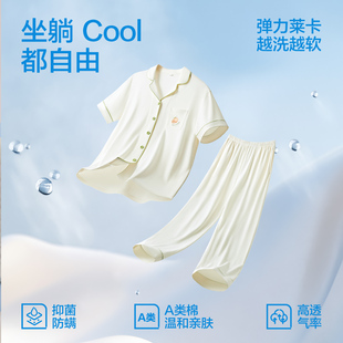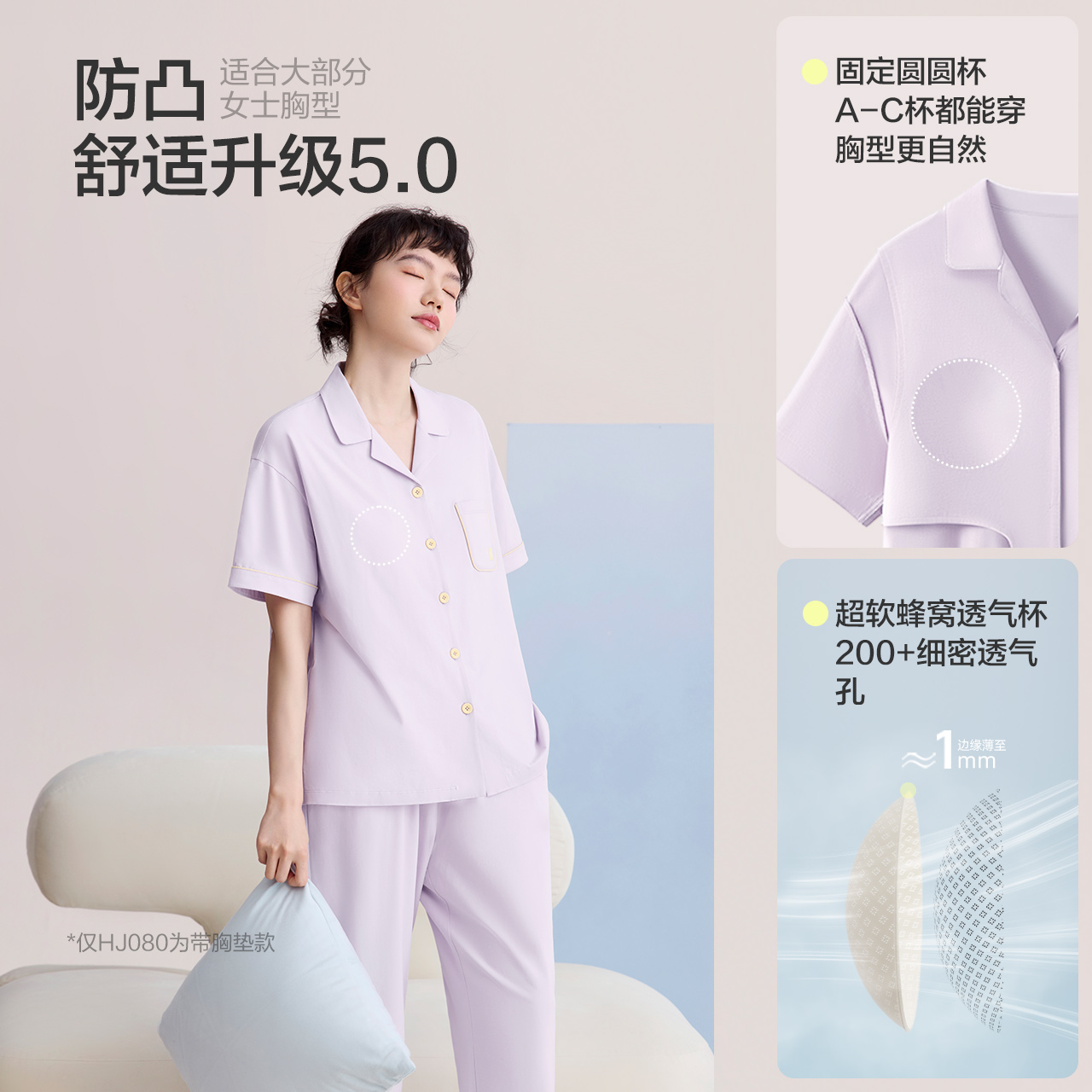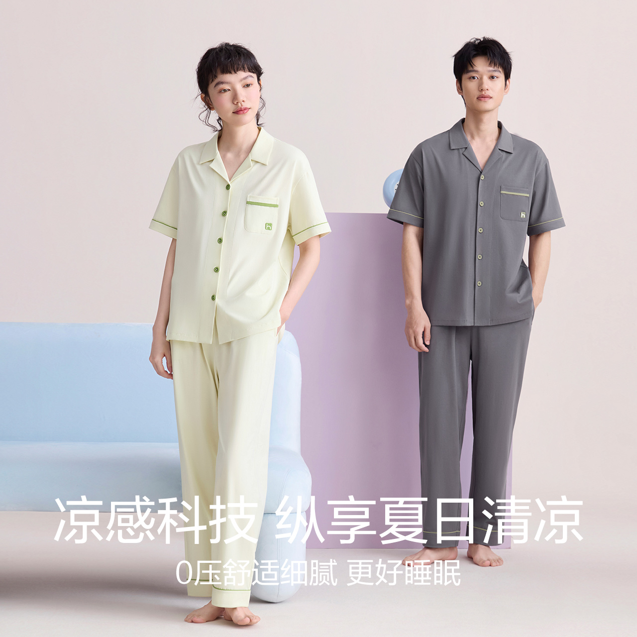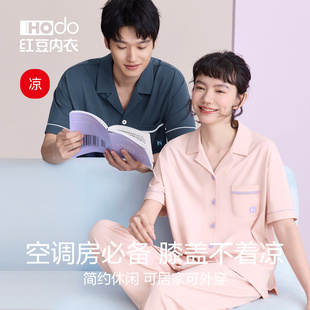 女棉莫代尔抗菌防螨带胸垫空调服家居服套装 男士 长裤 红豆睡衣短袖