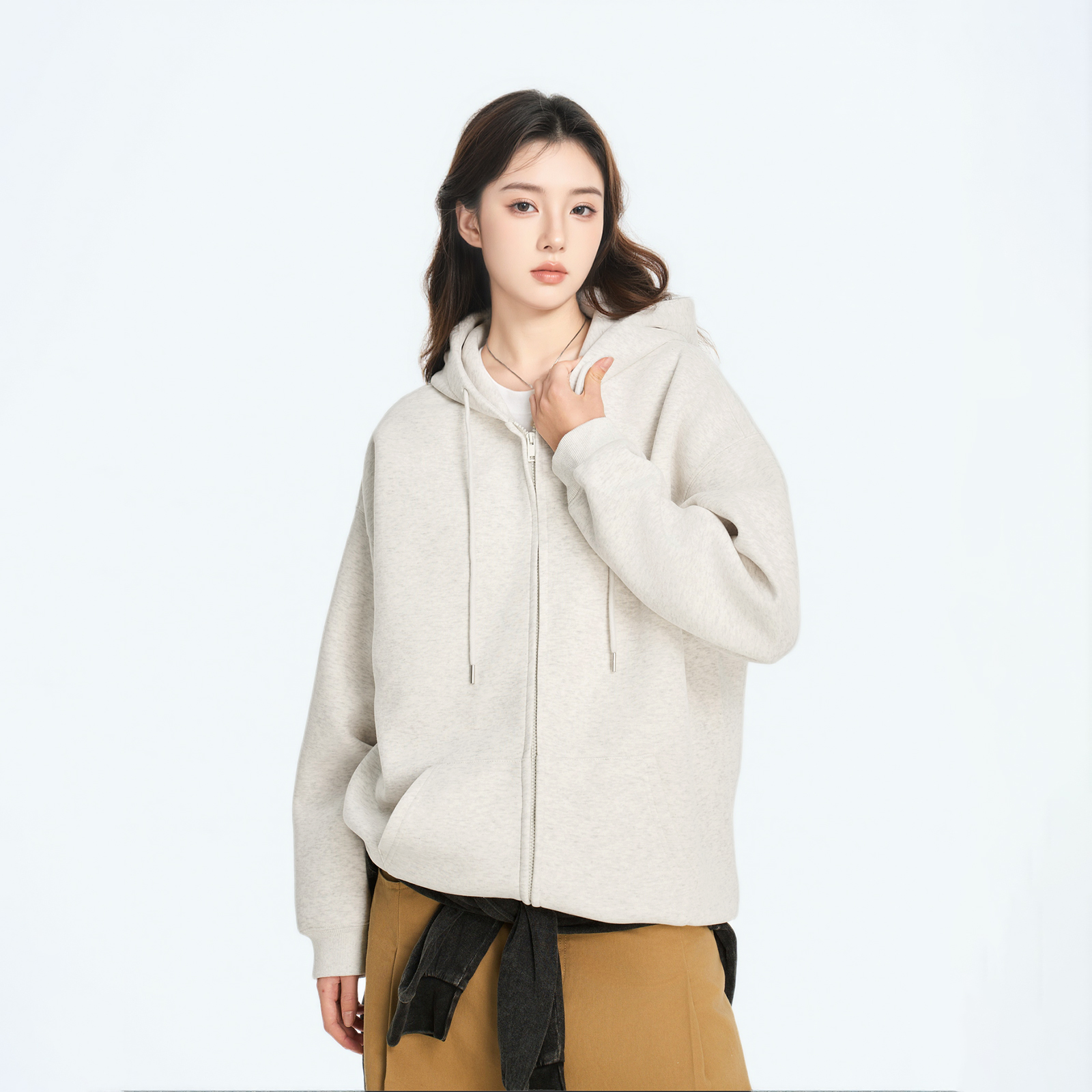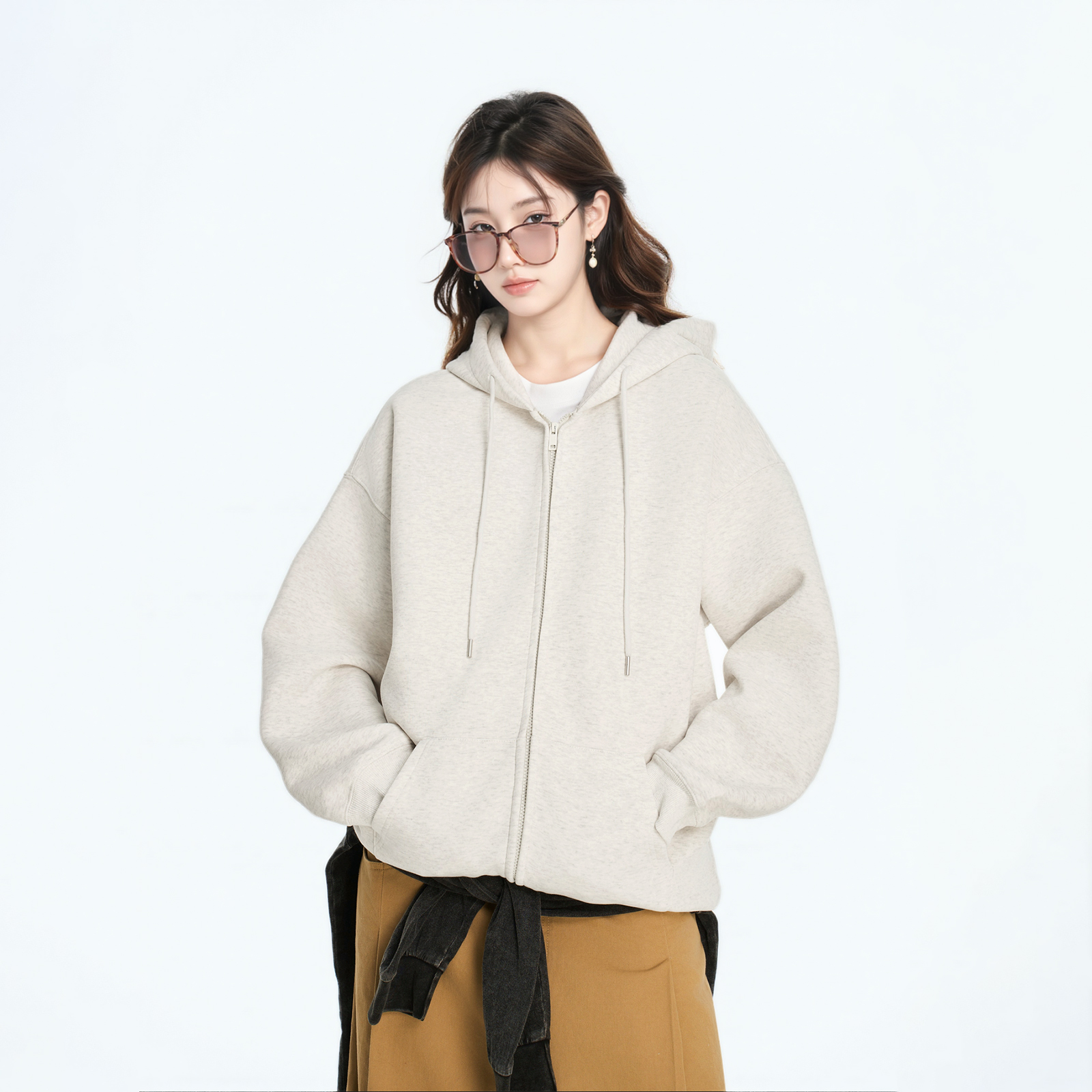 慵懒上衣高级感 宽松连帽拉链开衫 美式 复古纯色卫衣外套女春秋新款