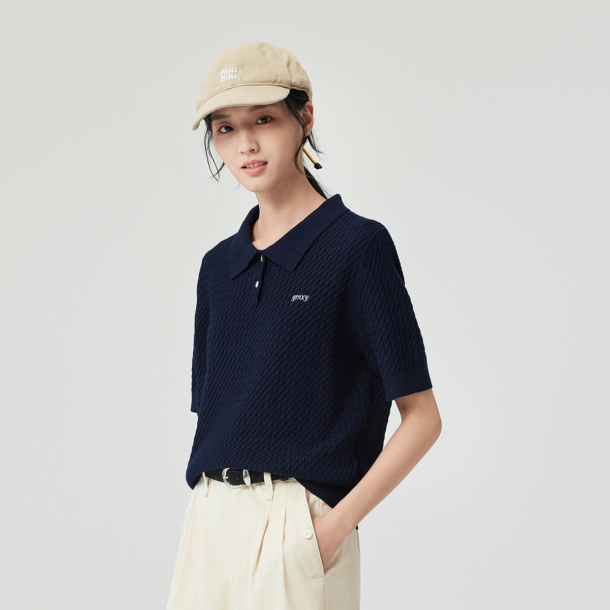 菱形提花落肩宽松显瘦秋季 gjhj花瓣领针织衫 马海毛羊毛混纺毛衣
