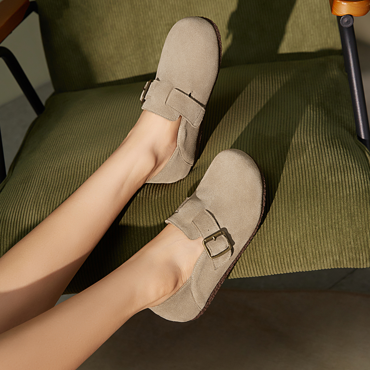 全包头平底一脚蹬孕妇博肯单鞋 春秋季 女2025款 意尔康真皮勃肯鞋