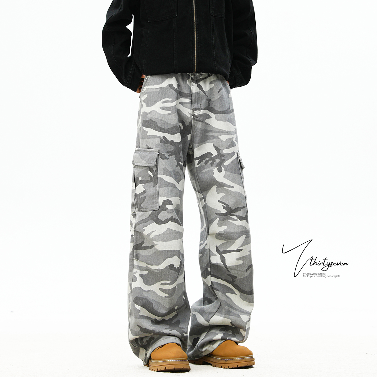 多口袋迷彩裤 子潮牌vibe宽松休闲裤 男秋季 裤 高街痞帅阔腿工装 美式