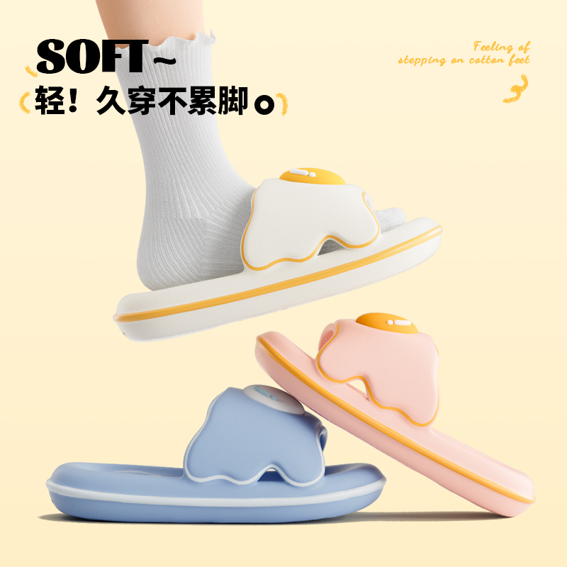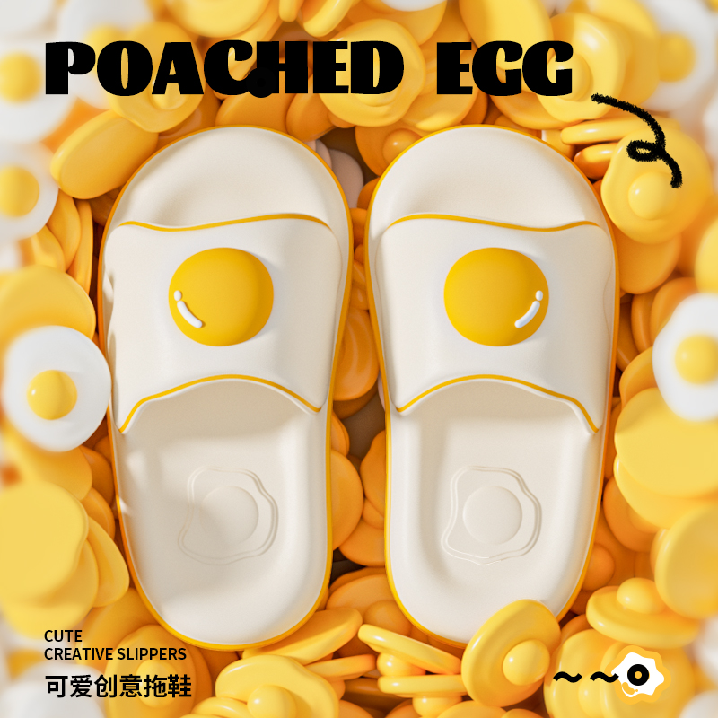 迟到时光可爱鸡蛋荷包蛋拖鞋 室内居家踩屎感外穿情侣凉拖男 女夏季