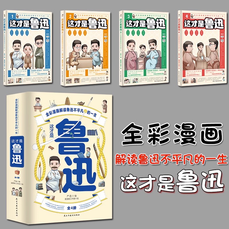 小学生一二三四五六年级课外阅读书籍儿童文学名著从百草园到三味书屋朝花夕拾呐喊孔乙己解读 全4册 这才是鲁迅 鲁迅全集漫画版