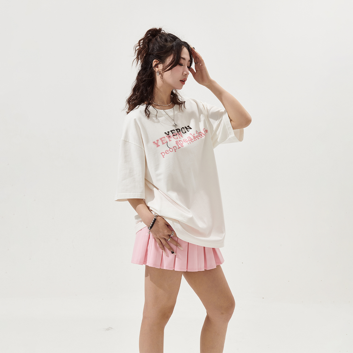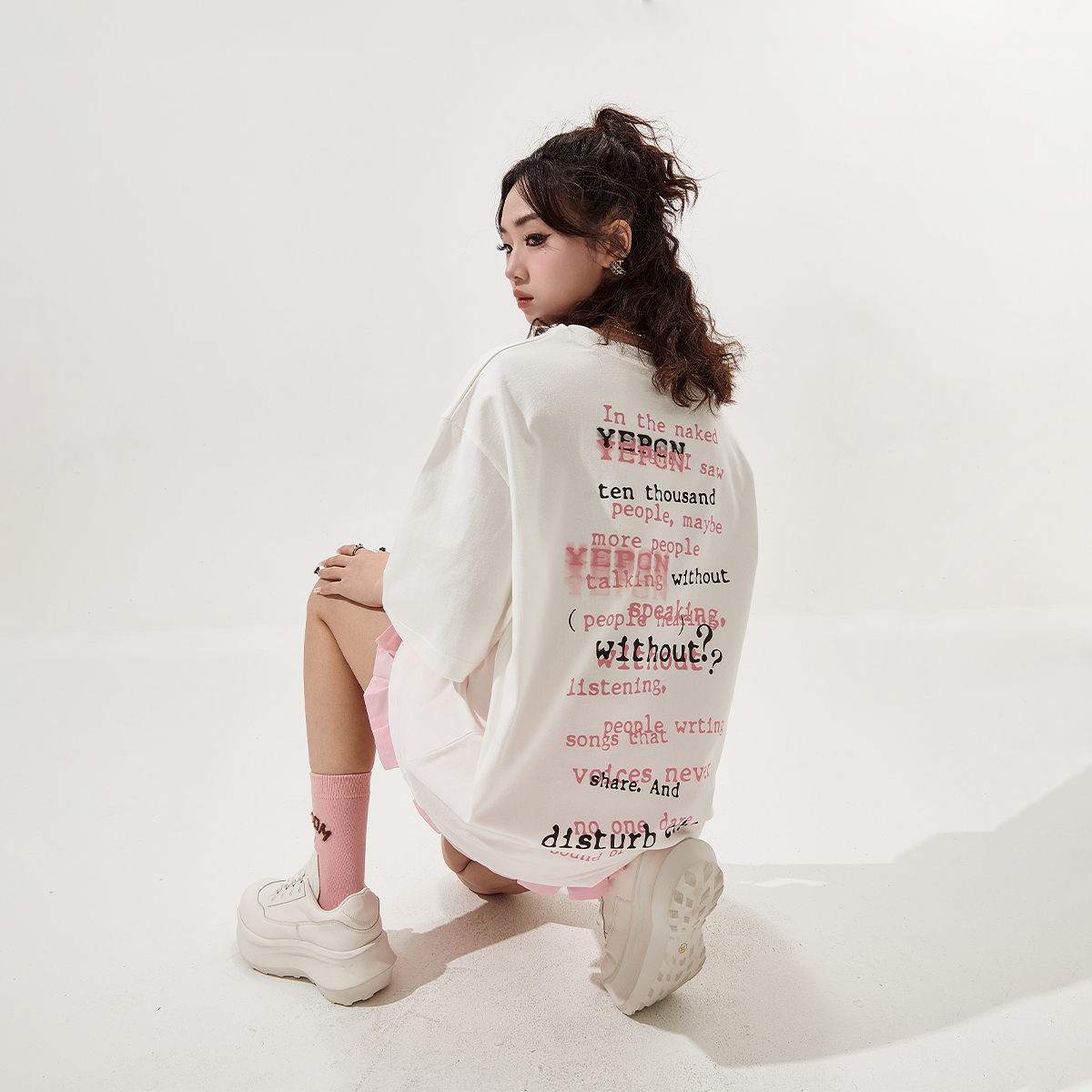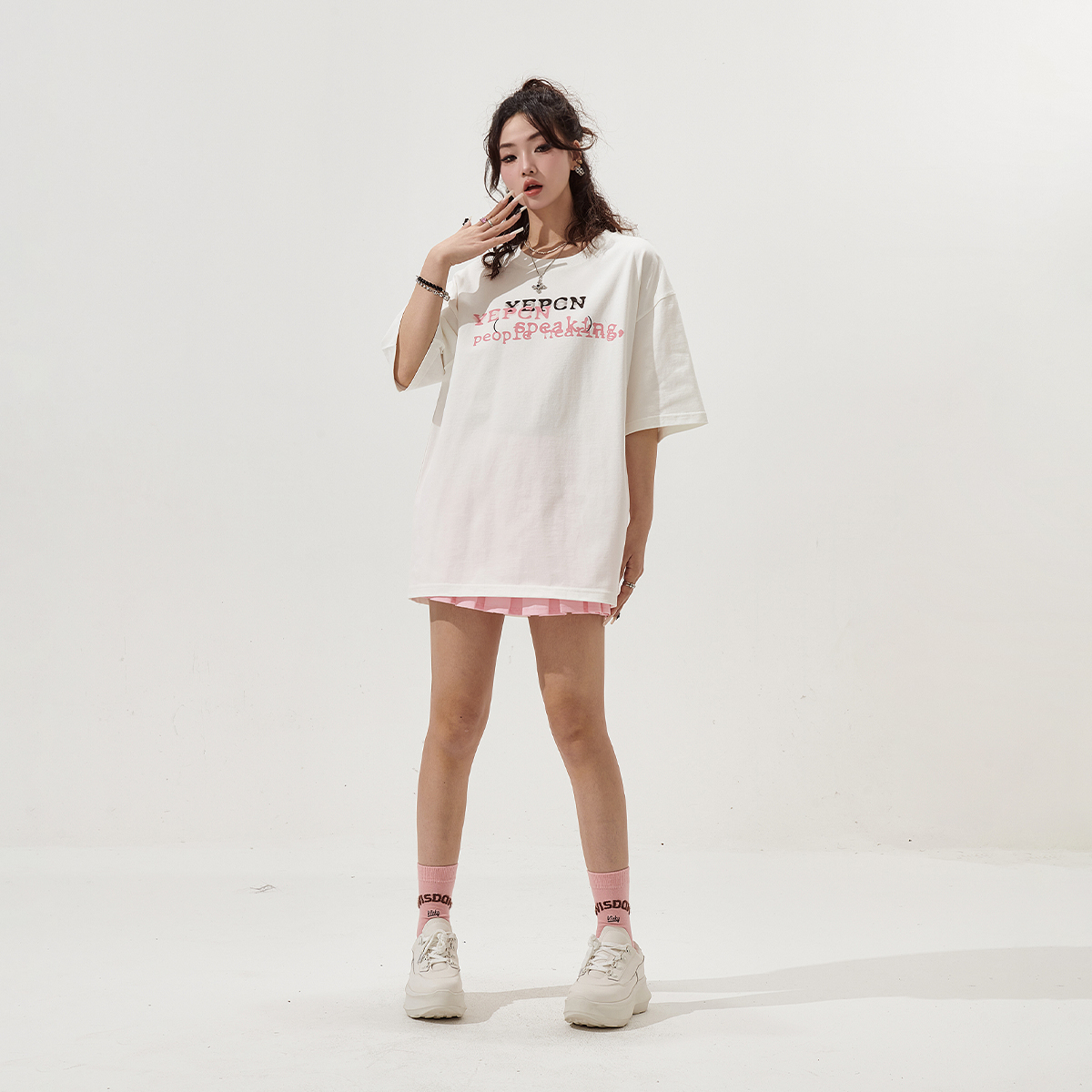 宽松上衣 街头潮牌复古情侣装 YEP白色印花短袖 t恤女春夏2025年新款