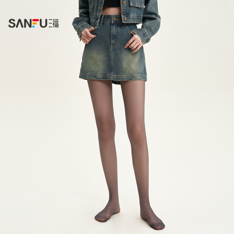 三福女裤 简约裸感透肤纤薄光腿连脚女袜子827983 袜单条装