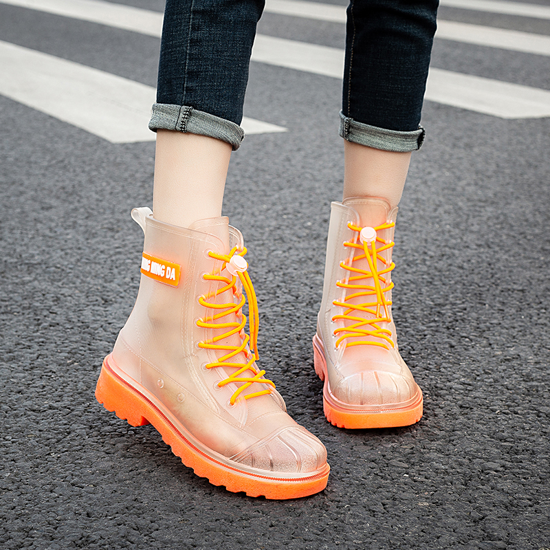 防滑加绒保暖透明雨靴户外涉水靴胶鞋 马丁雨鞋 百搭防水鞋 时尚 女款