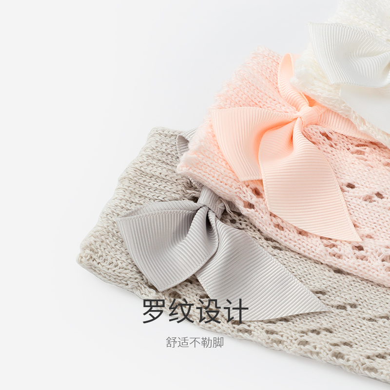 泰兰尼斯fit长筒透气小清新宝宝袜子蝴蝶结薄款 精梳棉袜儿童袜