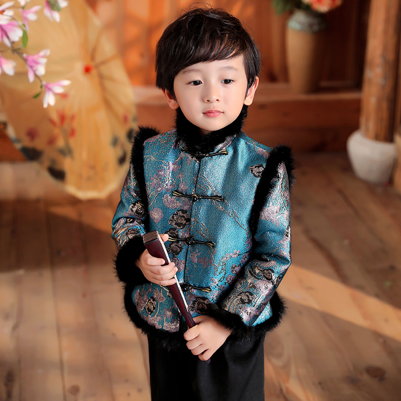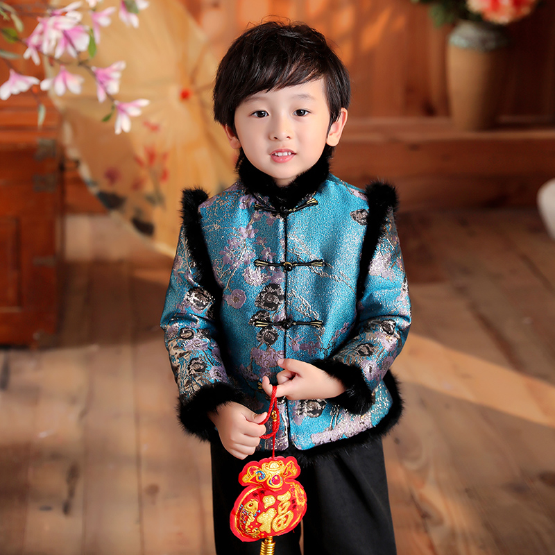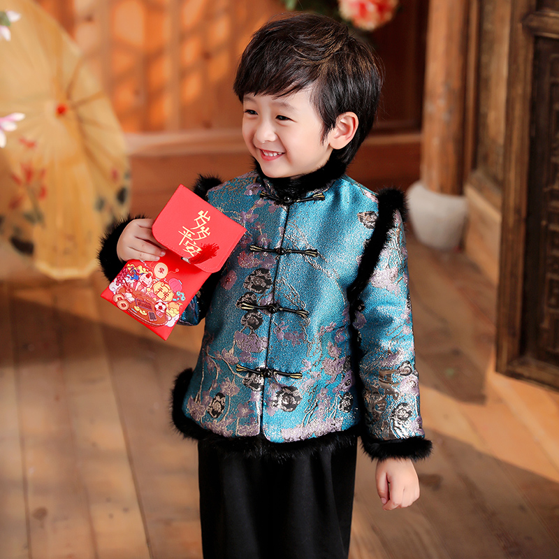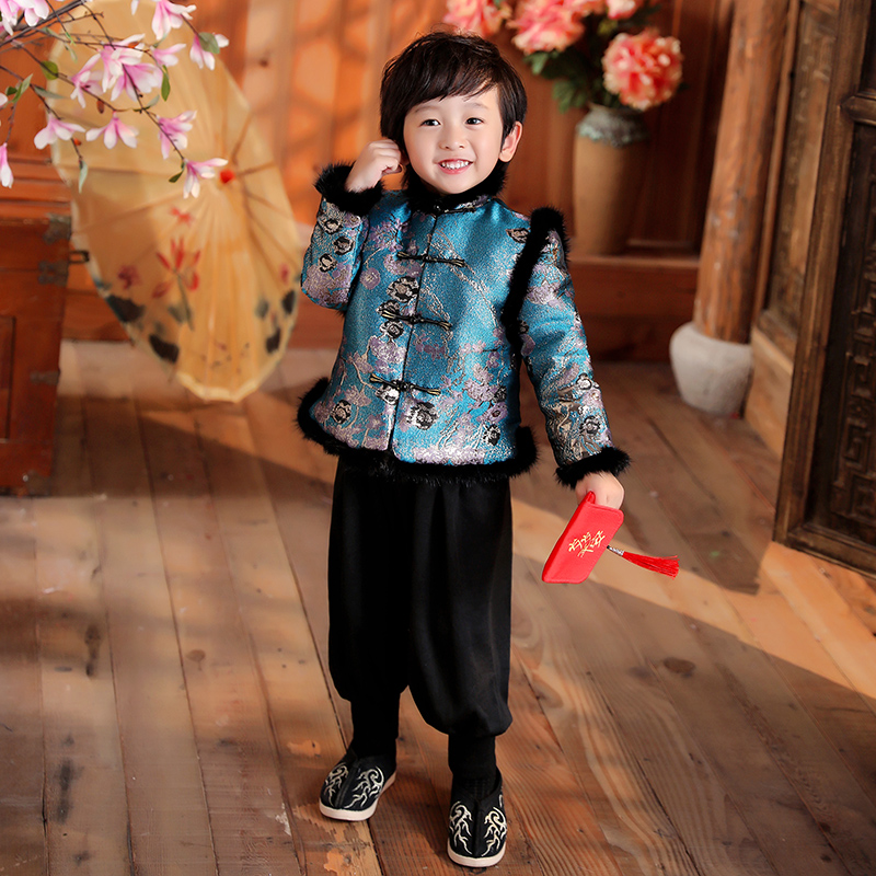 宵表演服2023年新款 男童唐装 汉服春加厚儿童中国风国学服男宝宝元