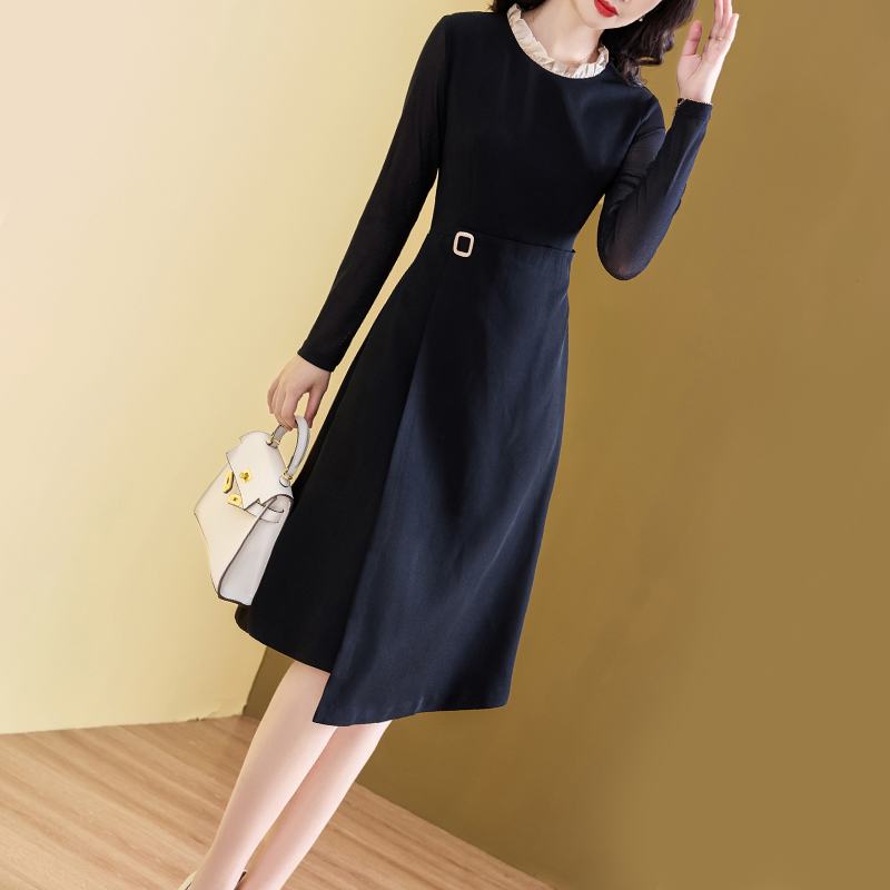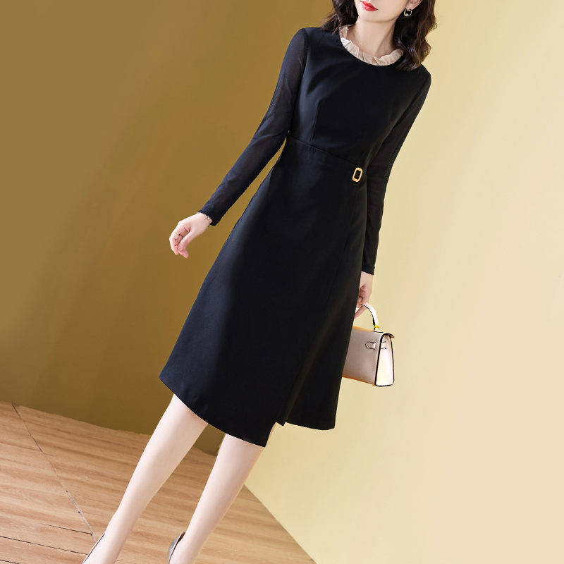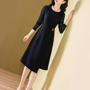 气质ol通勤v领长袖 法式 遮肚子显瘦连衣裙高档 2025年新款 春秋女装