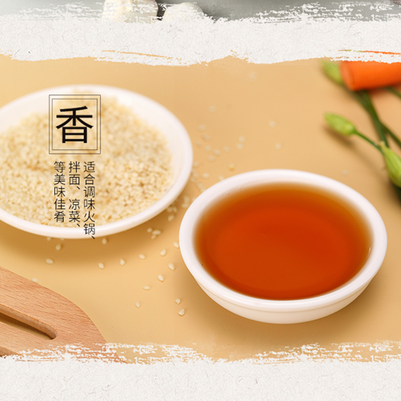 燕庄头道初榨黑芝麻香油500mL家用凉拌串串火锅辅食调味 秒杀