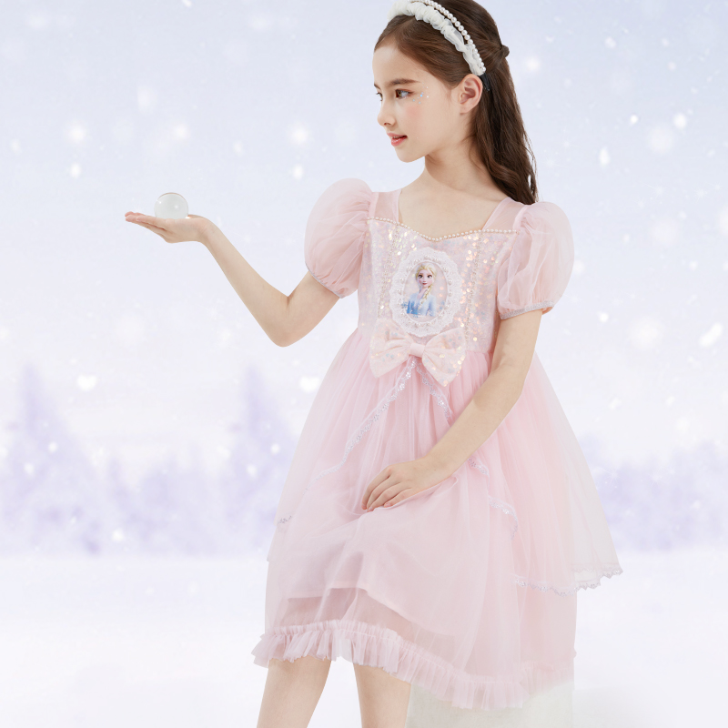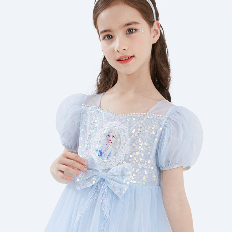 迪士尼女童连衣裙儿童裙子爱莎公主裙夏装 网纱裙艾莎表演裙 新款