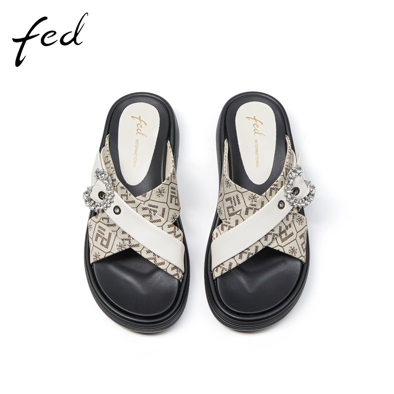 女鞋 新款 松糕鞋 交叉带软度休闲凉鞋 YS103 fed厚底凉拖鞋 R0502 夏季