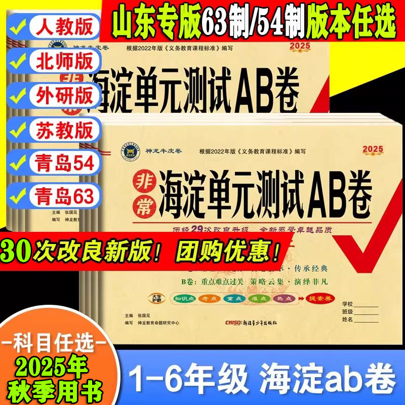 鲁科版 山东专用非常海淀单元 外研版 青岛版 63制54制小学同步训练考试卷子 测试ab卷一二三四五六年级上册语文数学英语同步试卷人教版