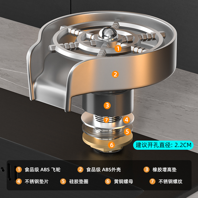 高压洗杯器304不锈钢水槽洗菜盆厨房咖啡奶茶店自动冲杯子神器