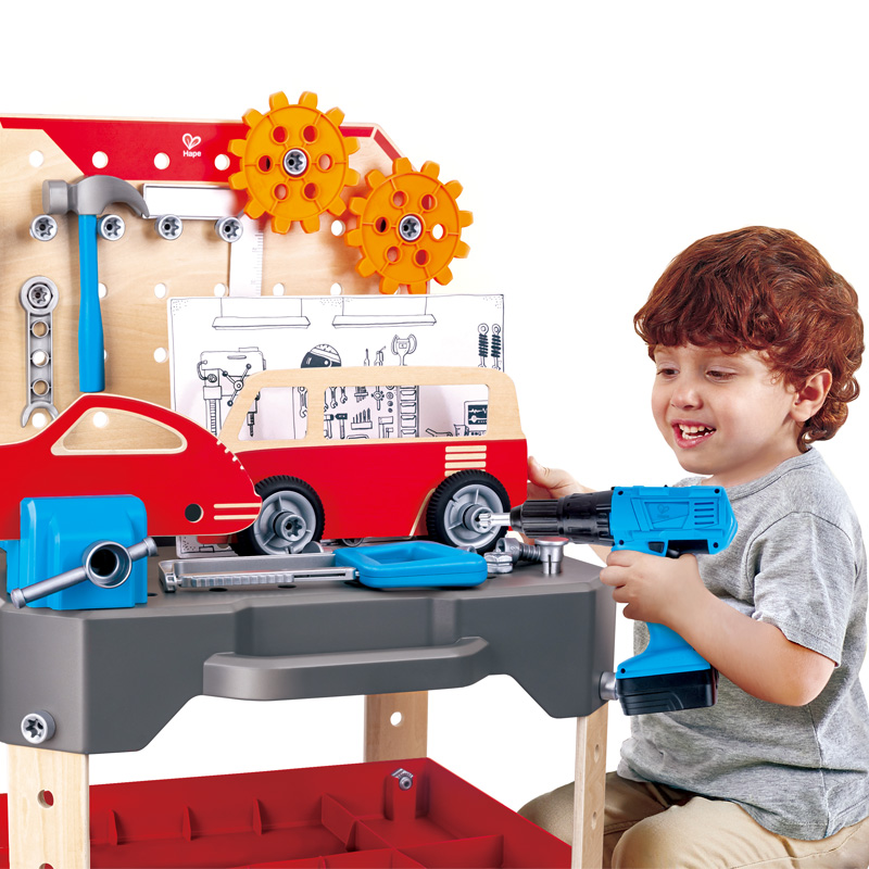 Hape汽车维修服务工作台STEAM科学实验套装 儿童男女孩宝宝玩教具