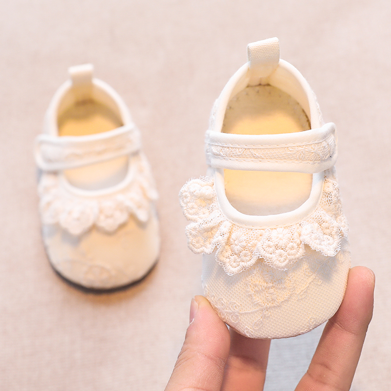 女宝宝超萌百天软底步前鞋 公主鞋 韩版 新生婴儿蕾丝花边防滑地板鞋