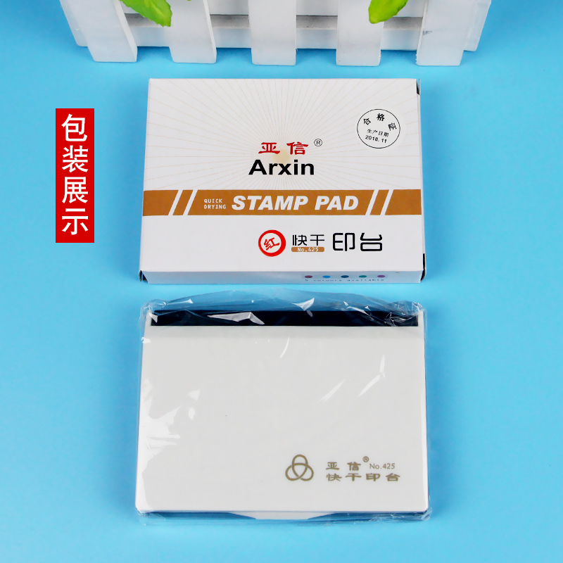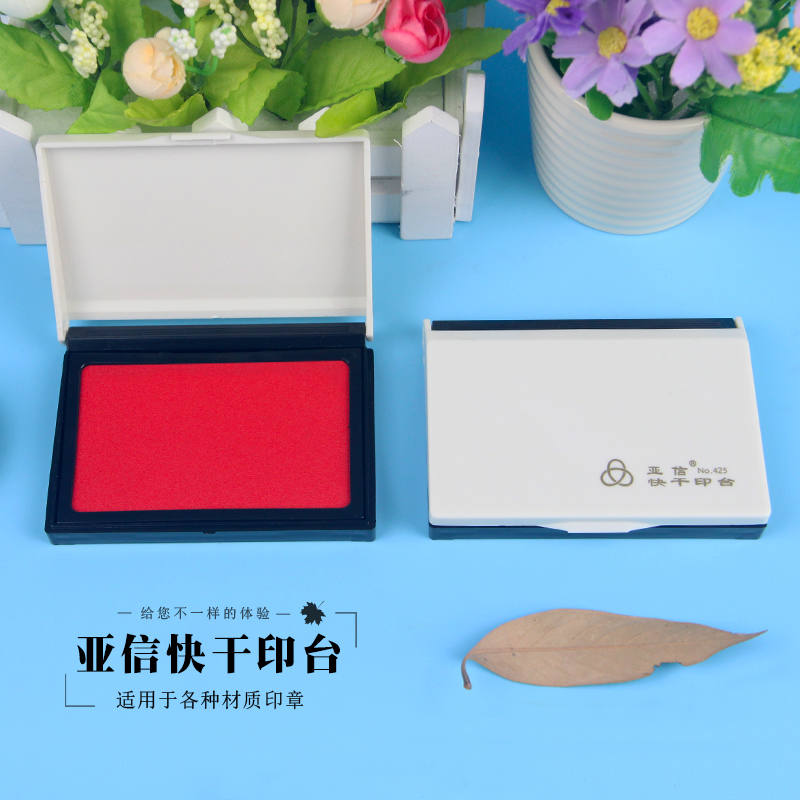 亚信印台红色快干蓝色黑色无色印泥儿童便携新生小号手足财务办公用品印章用指纹印泥盒印台