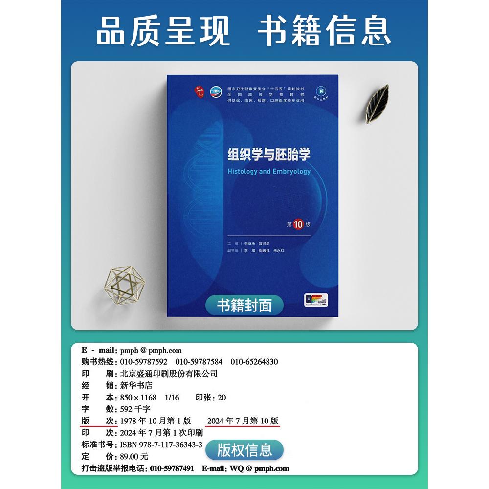 教材组织学与胚胎学教材 升级版 学习指导与习题集第4版 配套试题本科临床9版 同步辅导医学考研题库第十轮教材 人卫版 本科临床第10版