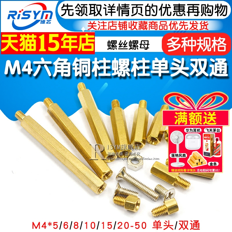 M4铜柱 50六角铜柱螺柱单头双通螺丝螺母 铜柱
