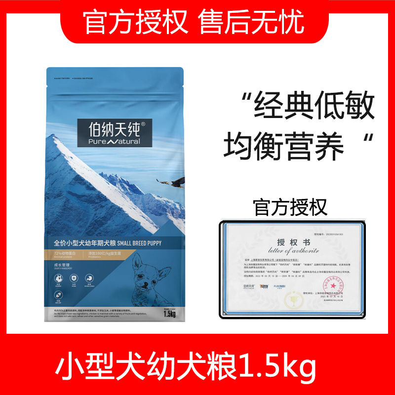 伯纳天纯狗粮小型犬成犬粮1.5kg泰迪比熊博美美毛泪痕幼老年粮3斤