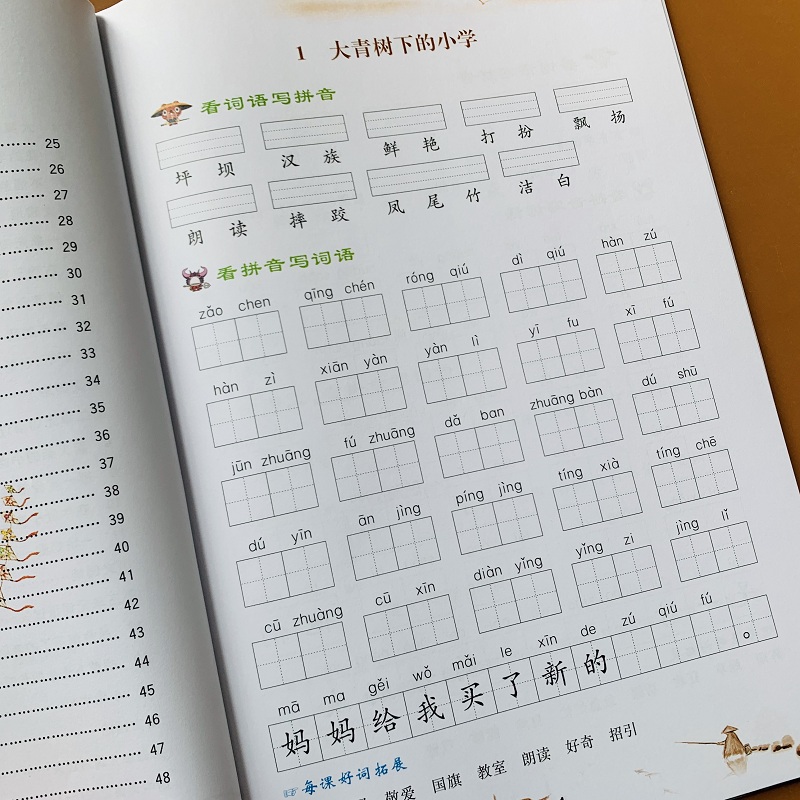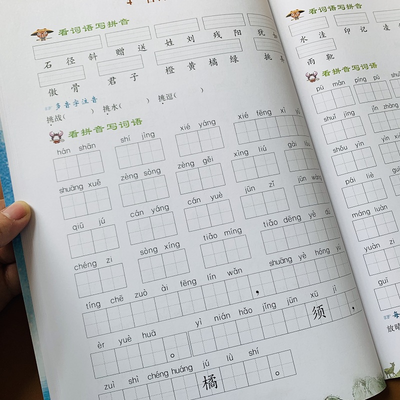 小学生看拼音写词语三年级上册人教版 三年级拼音专项练习语文同步训练生字词语默写注音3年级一课一练辅导资料书写字课课练 部编版
