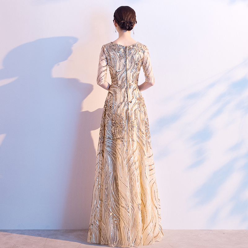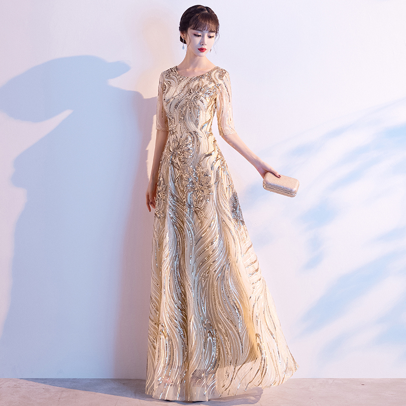 创意狐宴会礼服裙女长款 婚礼婚宴妈妈礼服改良旗袍连衣裙婆婆晚装