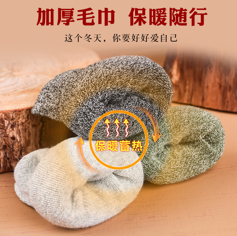 袜子男装 加绒加厚保暖毛巾纯棉冬天毛线满300减50 长袜长筒冬季