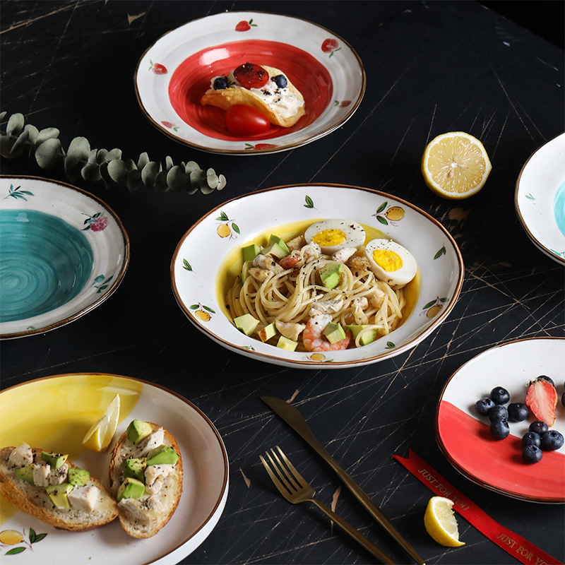 舍里草莓陶瓷餐具高颜值米饭碗家用菜盘汤碗好看 碗盘子组合套装