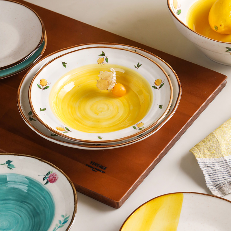 高淳陶瓷绿之灵骨瓷碗碟套装 手绘陶瓷盘子面碗米饭碗汤盘平盘 欧式