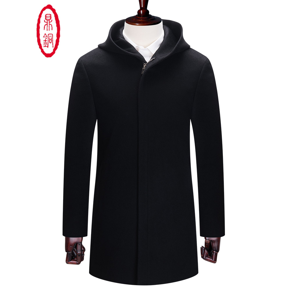 过膝无羊绒呢子风衣外套韩版 毛呢大衣男中长款 宽松落肩 新款 秋冬季