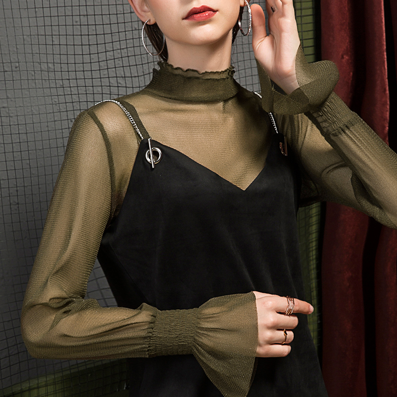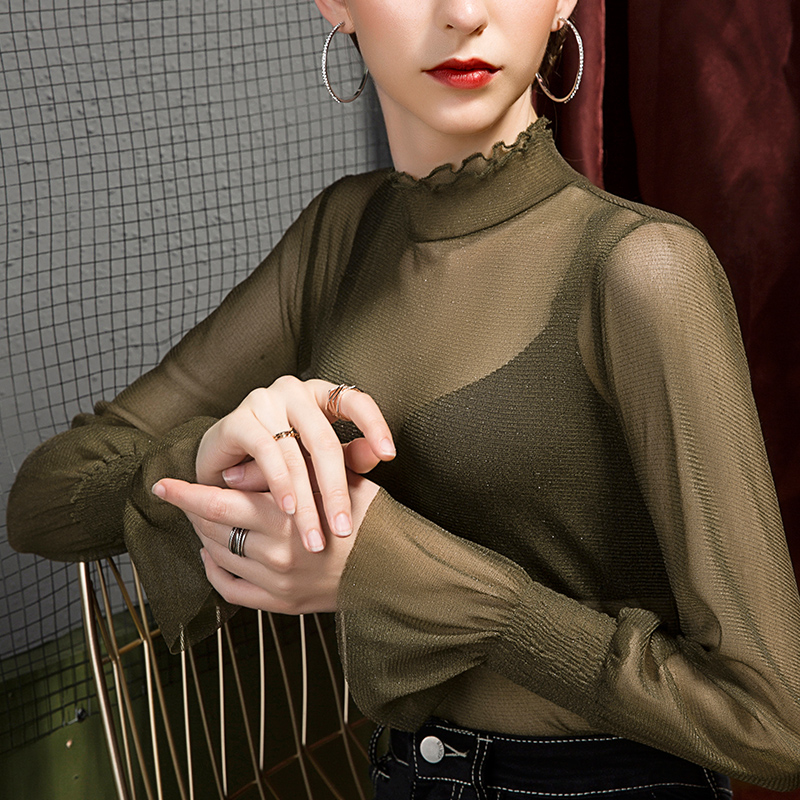 女立领泡泡袖 双层领网纱打底衫 透视上衣长袖 女装 2025秋季 小衫 新款