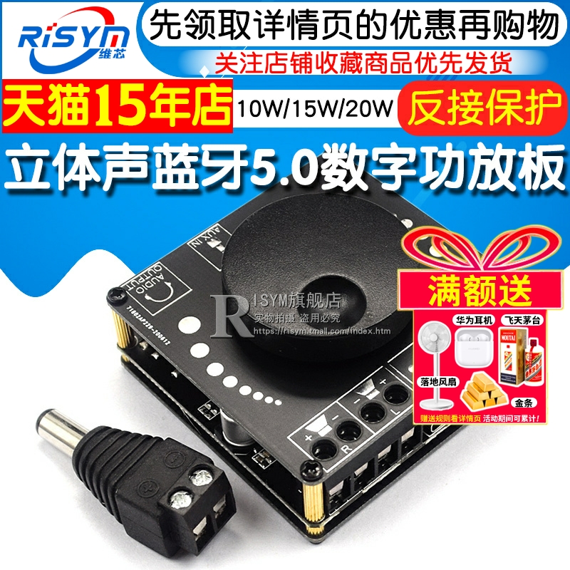U盘 20W立体声蓝牙5.0数字功放板 24V音量调节 反接保护