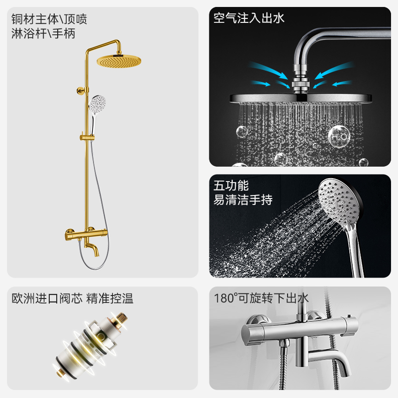 FLOVA丰华卫浴智能恒温淋浴花洒套装 温控淋浴器喷头淋雨 龙头明装