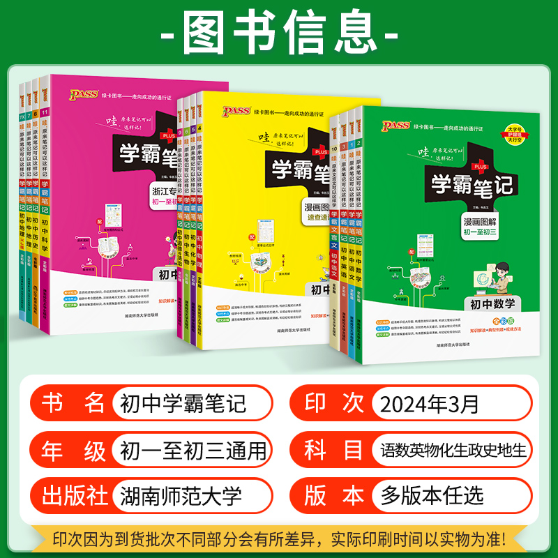 2025学霸笔记初中全套9本语文数学英语物理生物化学政治历史地理人教版 初一初二初三七年级八九年级知识大全清单中考总复习通用
