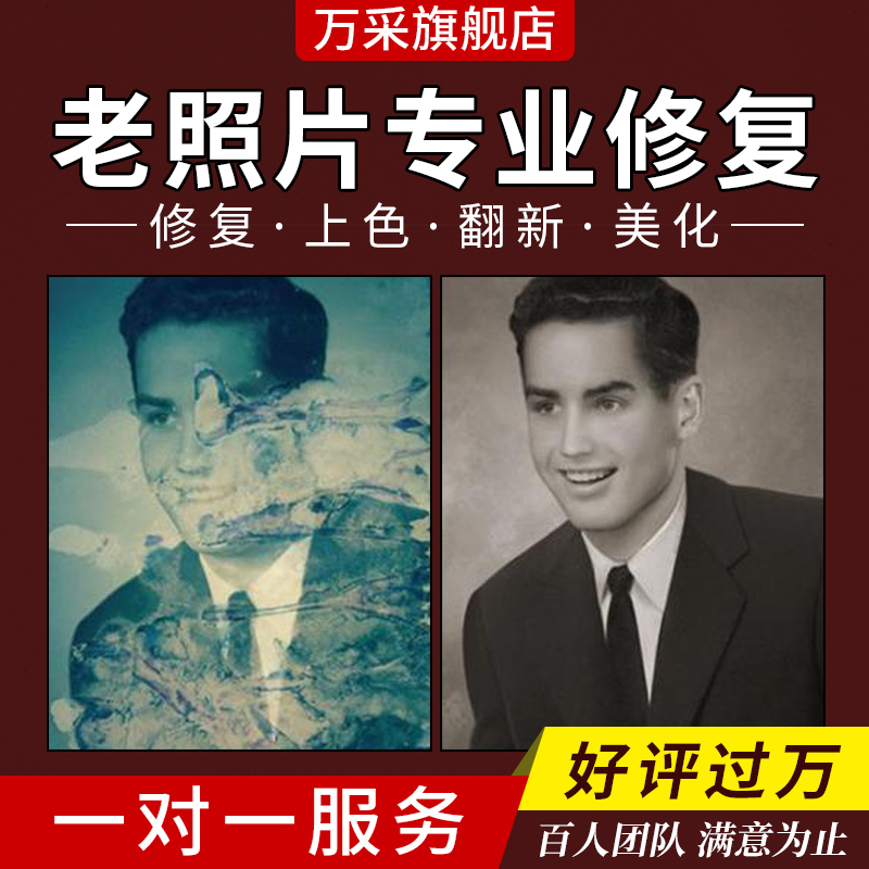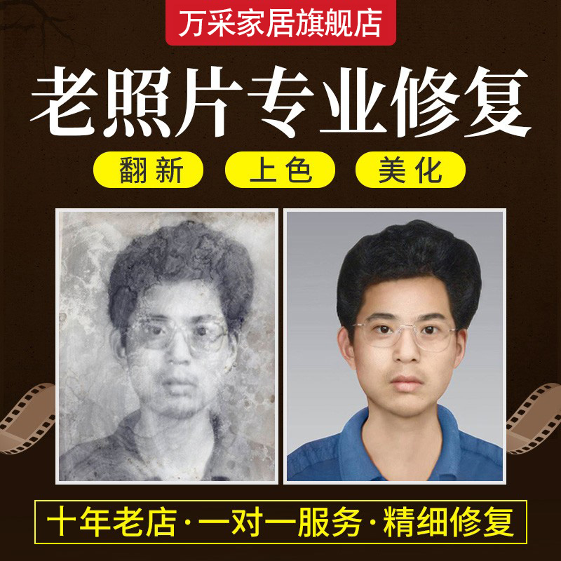 老照片修复翻新处理旧照片修补相片黑白上色去皱损坏图片清晰还原