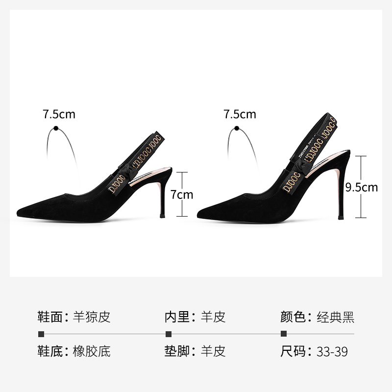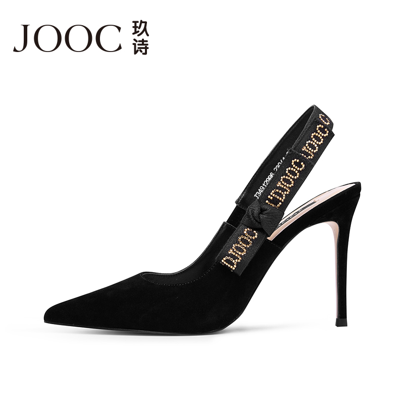 JOOC玖诗高跟鞋 系列 水钻蝴蝶结后空百搭细跟黑色单鞋 经典