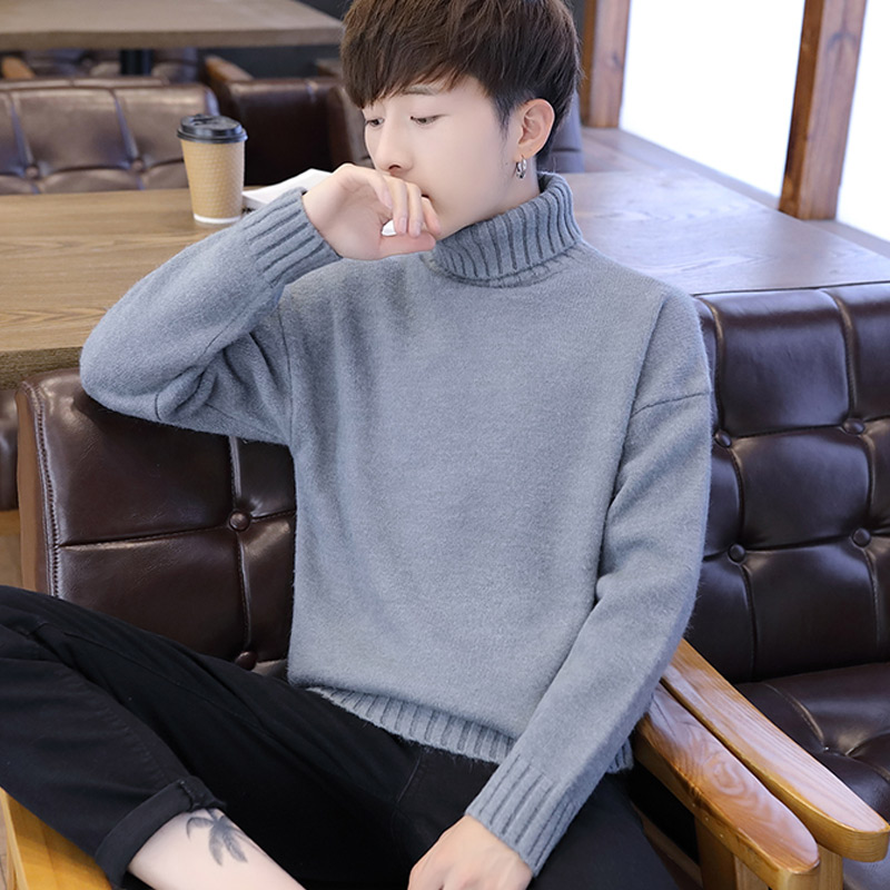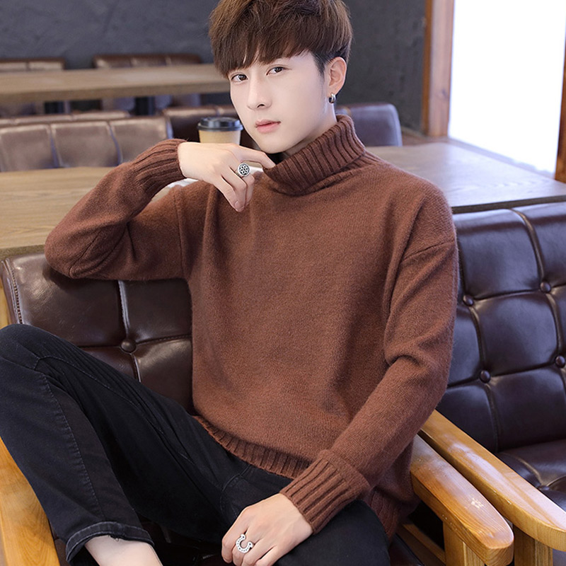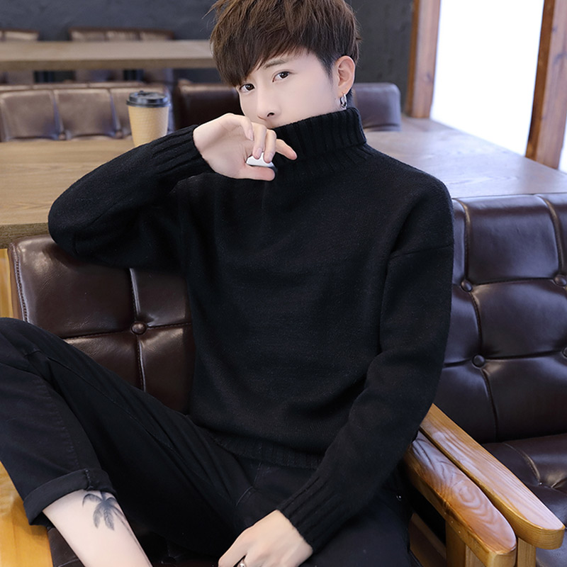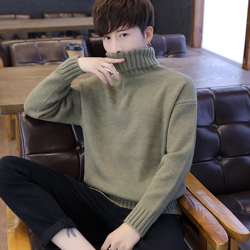 潮流学生宽松情侣加厚保暖长领纯色打底衫 韩版 高领毛衣秋冬季 男士