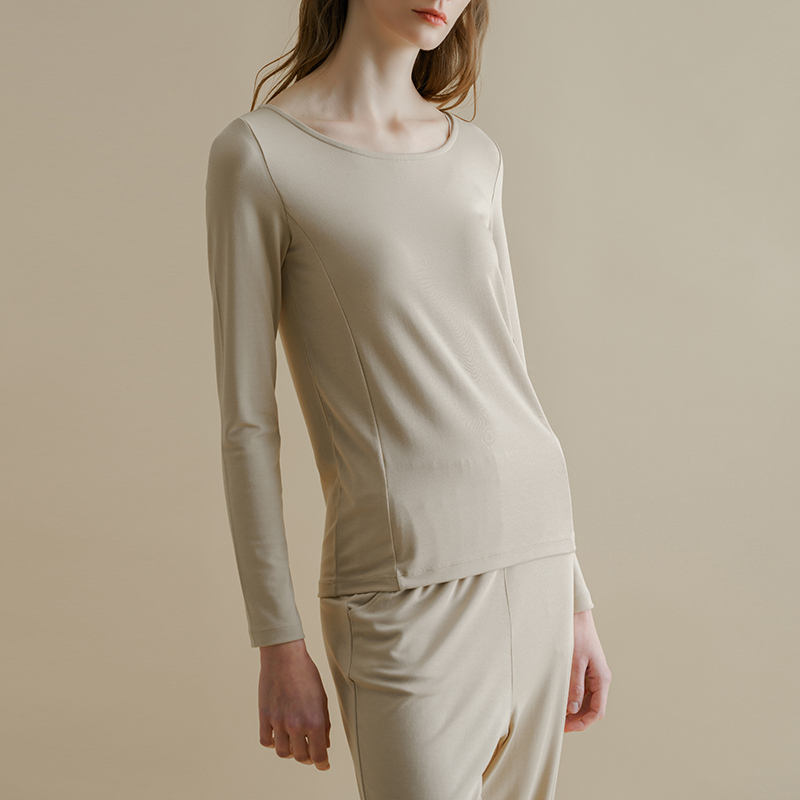 莫代尔家居服长袖 上衣单件女士圆领套头居家外穿t恤 睡衣女春秋季